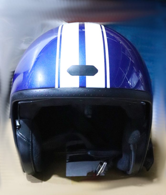 Airbrush helm ini memiliki dasar warna biru toska mutiara, dipadukan dengan striping warna putih. “Striping dengan model seperti ini dapat dibilang tak lekang dimakan zaman, pasalnya model striping garis ini bisa diterapkan atau disesuaikan pada kendaraan atau helm dengan konsep vintage ataupun konsep modifikasi lainnya. Dari zaman dulu hingga saat ini masih banyak penggemar otomotif yang memadukan grafis seperti ini di konsep modifikasinya,” tegas Tomy.